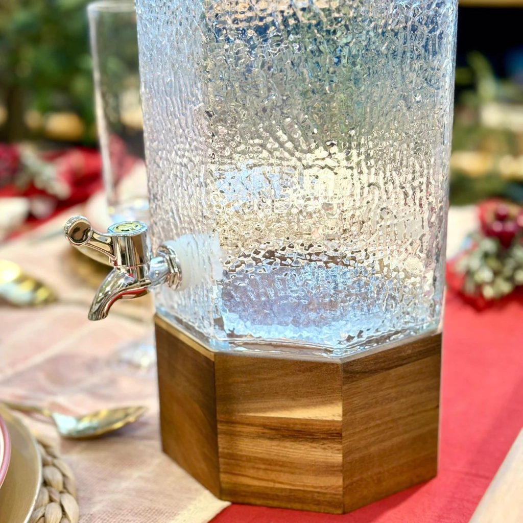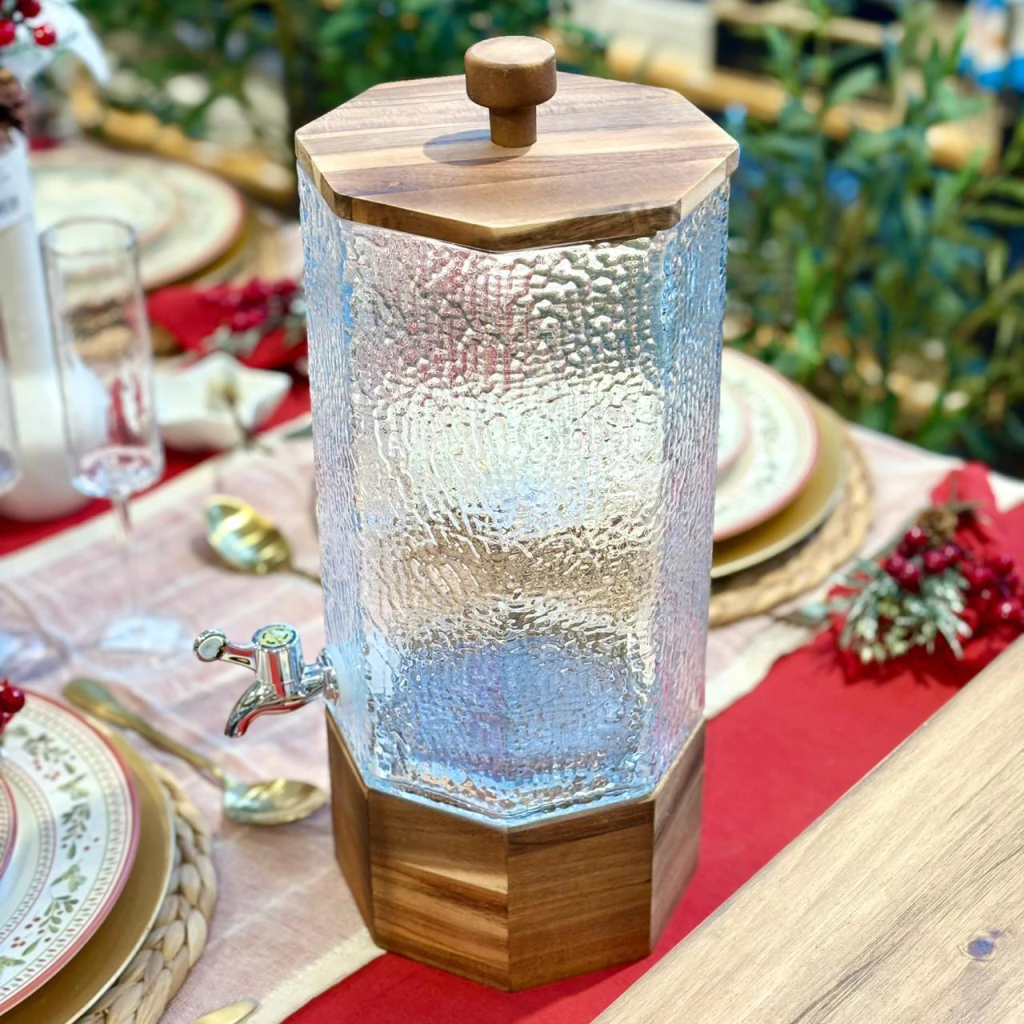 Este dispenser de vidrio octogonal muy original en su diseño es el complemento ideal para tu cocina o comedor o para cualquier tipo de evento.