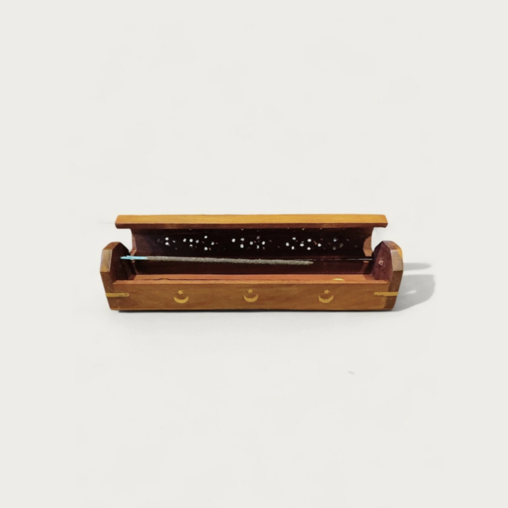 Características: - Diseño elegante: Su madera oscura aporta calidez y estilo. - Funcionalidad: Organiza tus sahumerios de manera práctica. - Versátil: Ideal para sala, dormitorio o meditación.